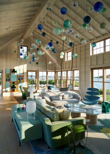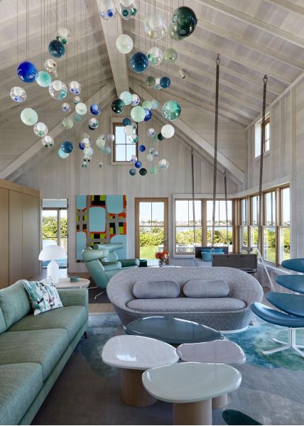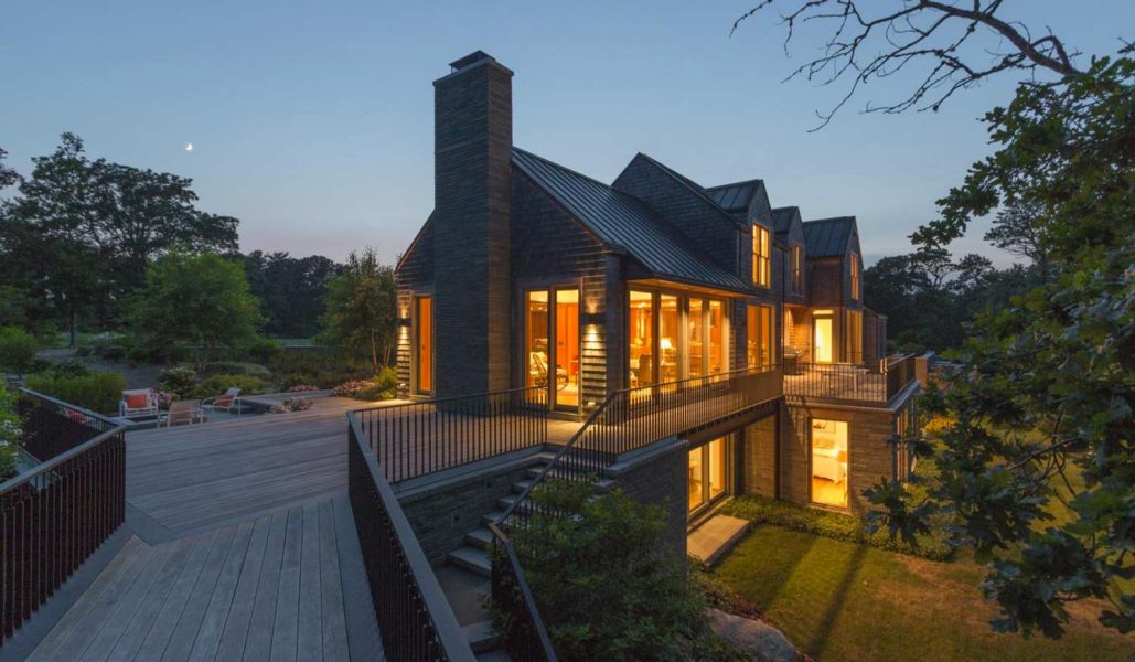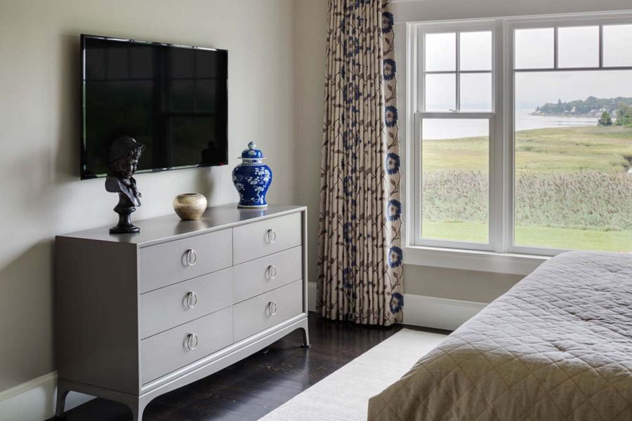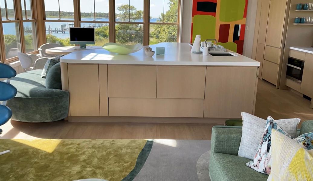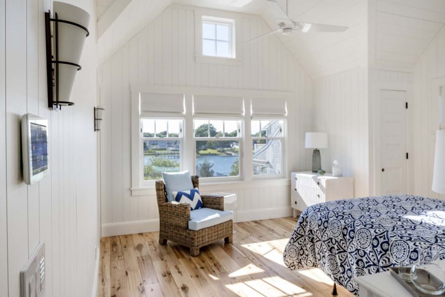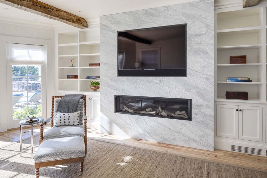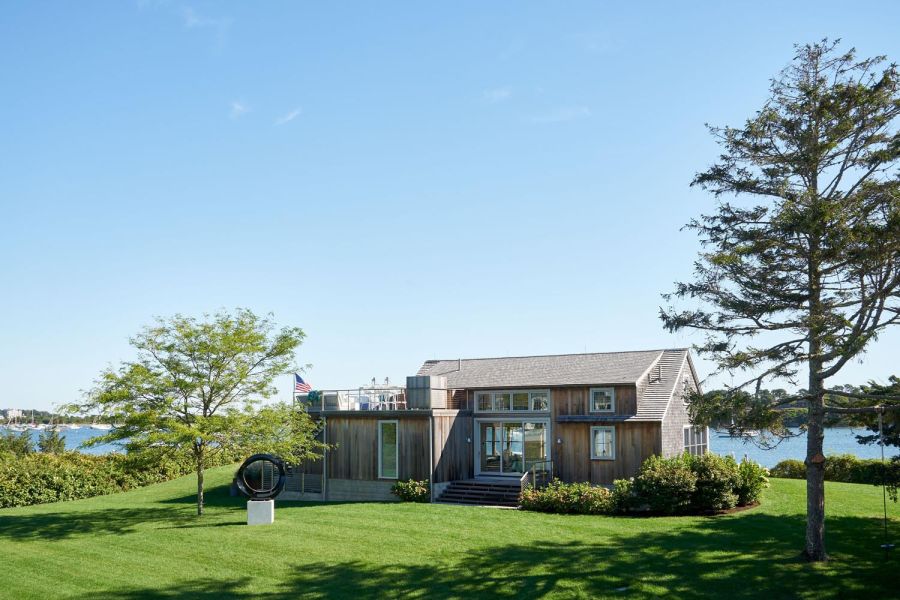 This Cottage by the Sea in Martha’s Vineyard features ocean views, entertainment spaces, and hidden TV’s. The family’s goal was to create a seaside Cape Cod feeling during the day with the flexibility to double as an entertaining space at night.