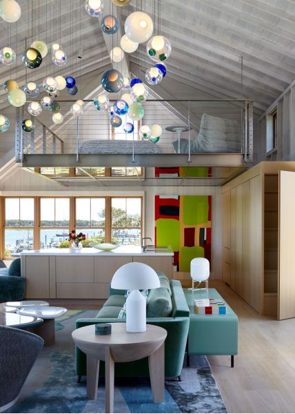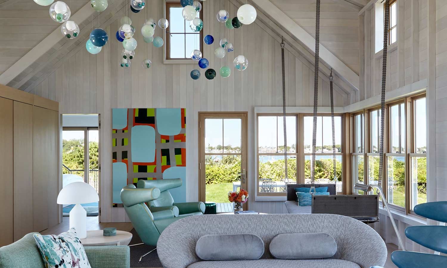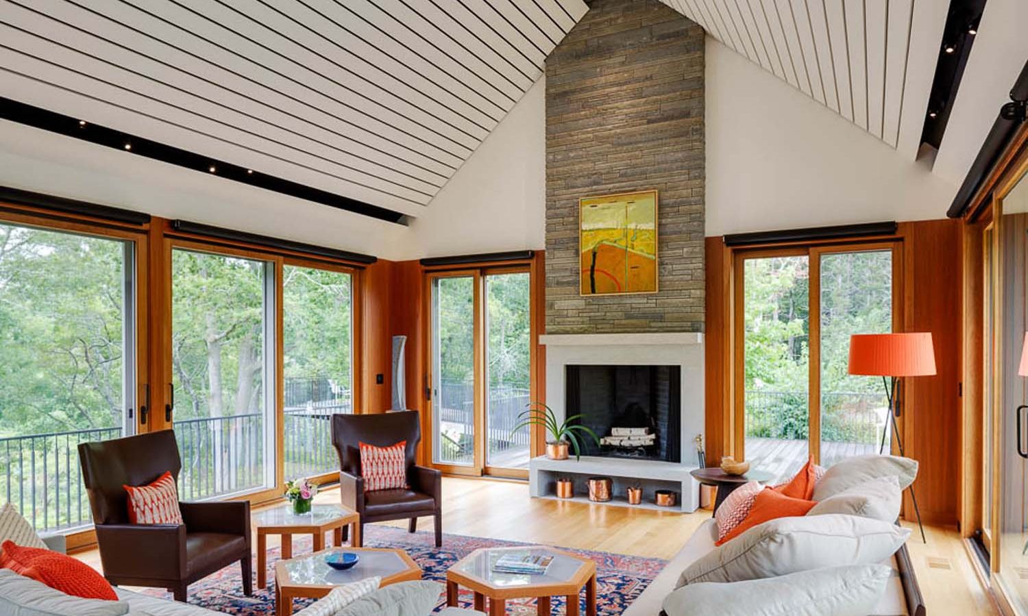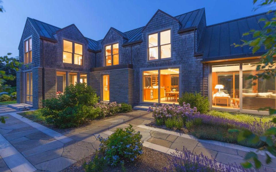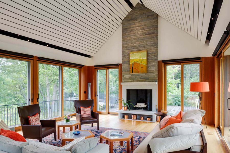 This Cottage by the Sea in Martha’s Vineyard features ocean views, entertainment spaces, and hidden TV’s. The family’s goal was to create a seaside Cape Cod feeling during the day with the flexibility to double as an entertaining space at night.
