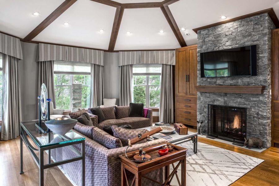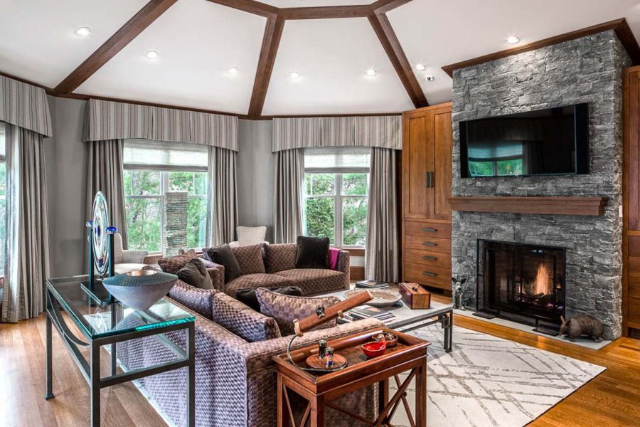 A pretty setup is made astonishing thanks to convenient smart controls with Control4 whole-house A/V integration. One-touch settings offer five “media scenes” based on source selection. Family members need only select “DVD” to trigger a series of automated adjustments that include activating the A/V system and dimming the lights. Mood settings are also available.